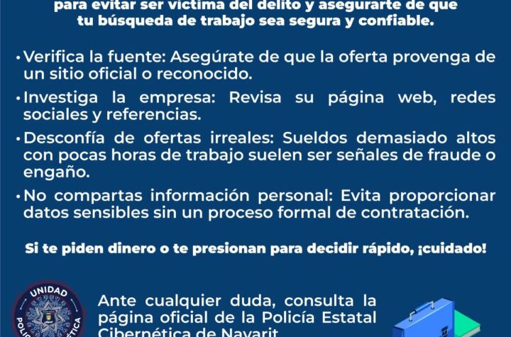 ⚠️ ¡Cuidado con el reclutamiento falso en redes! ⚠️ 🔎 Verifica ofertas de trabajo: Investiga la empresa y sus canales...