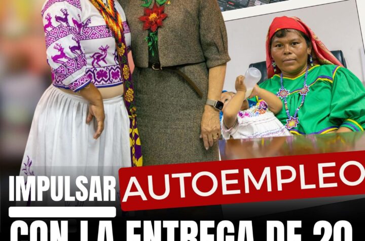 La presidenta del Sistema DIF Nayarit, doctora Beatriz Estrada Martรญnez, encabezรณ la entrega de 20 mรกquinas de coser a mujeres...