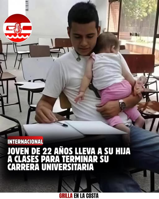 Durante las jornadas universitarias, el joven atiende sus clases mientras cuida a la niรฑa, una imagen que ha sido destacada como ejemplo de responsabilidad y perseverancia.