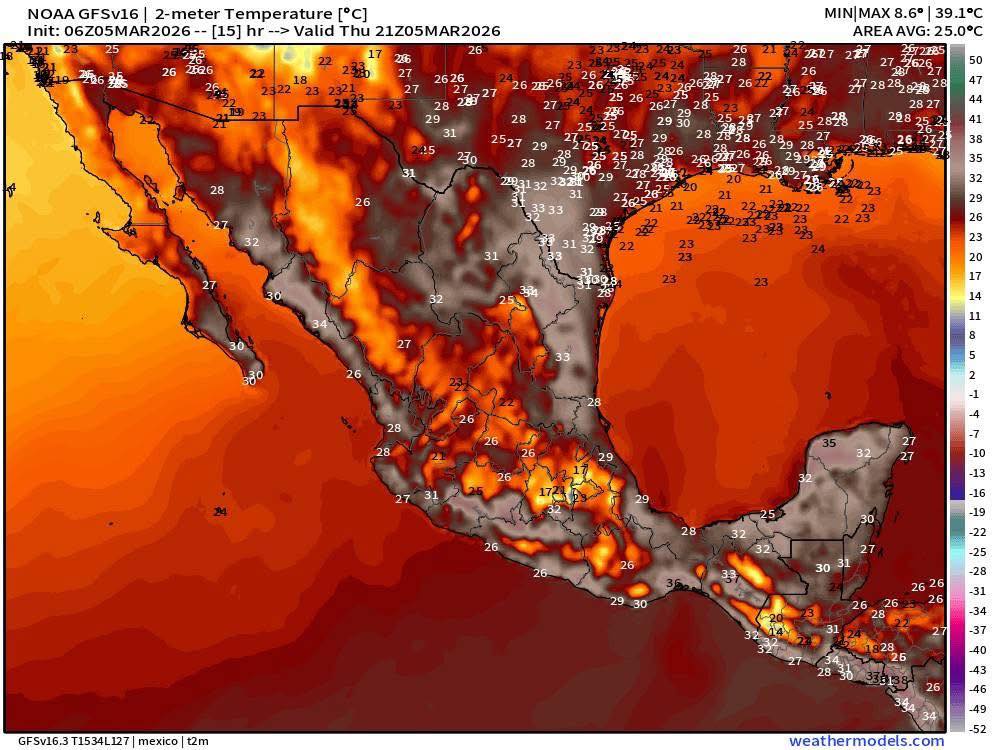 En el transcurso de la tarde se pronostican temperaturas templadas con valores de 20 a 25Β°C en el norte, bajΓo y centro, mientras que en el resto del noroeste, noreste, oriente, occidente, sur y sureste se estiman mΓ‘ximas entre 30 y 40Β°C.
