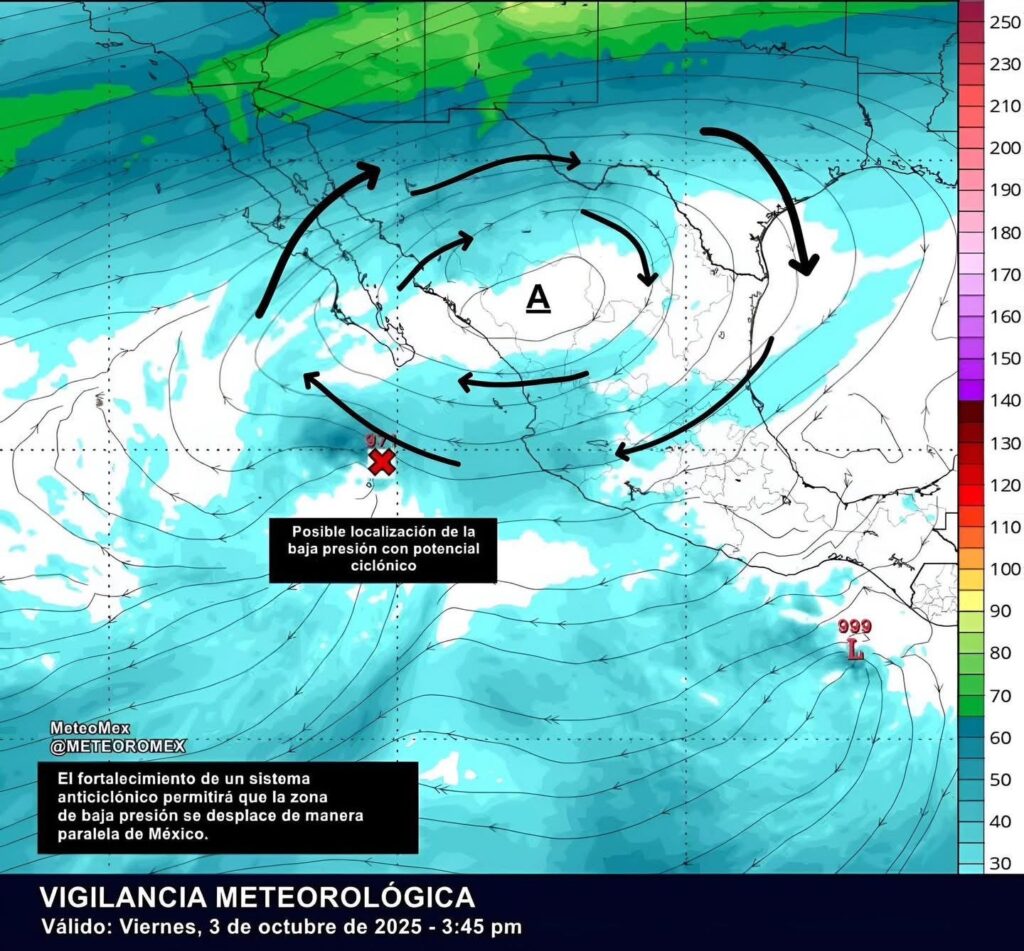 ๐ Segรบn el mรกs reciente anรกlisis de MeteoMex, este sistema de alta presiรณn actuarรก como un โbloqueo atmosfรฉricoโ, lo que podrรญa impedir que el ciclรณn se acerque a costas del Pacรญfico mexicano y lo desviarรญa mar adentro.