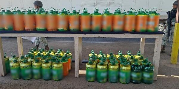 Elementos de la Guardia Nacional realizaron el decomiso de mil 67 litros de metanfetamina en la carretera Sonoyta-San Luis Rรญo Colorado, en el municipio de San Luis Rรญo Colorado, Sonora.
