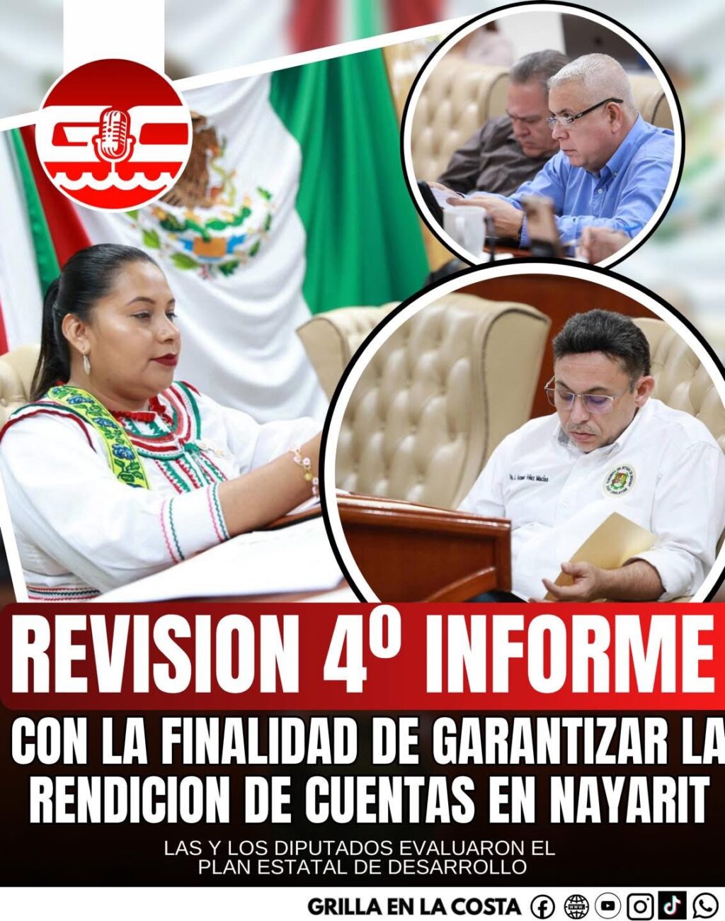 Tepic, 26 de septiembre de 2025.- En cumplimiento del artículo 42 de la Constitución Política del Estado de Nayarit y con el objetivo de garantizar la rendición de cuentas, las y los diputados integrantes de la Trigésima Cuarta Legislatura en Sesión Pública Ordinaria, dieron inicio al análisis del Cuarto Informe de Gobierno presentado por el gobernador del estado, doctor Miguel Ángel Navarro Quintero.