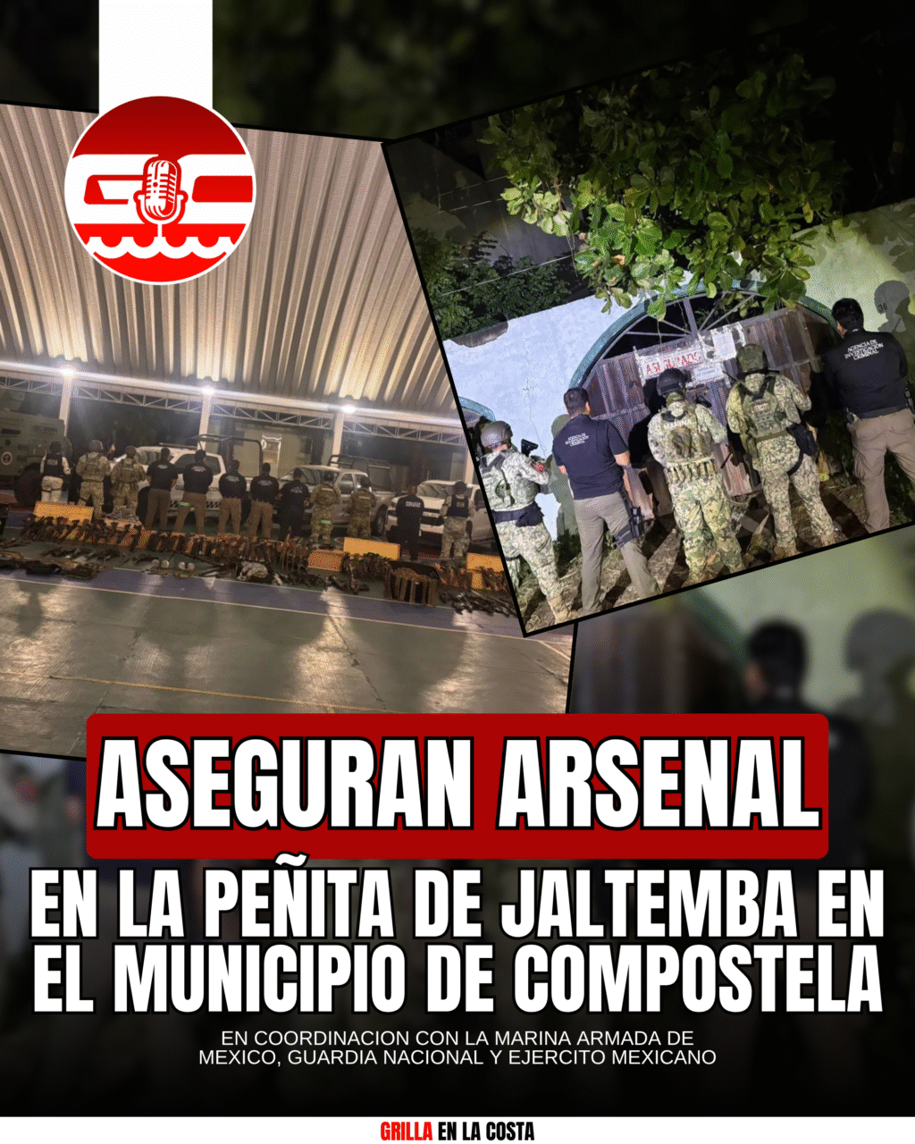 En un operativo de alto impacto realizado este 12 de octubre en La Peรฑita de Jaltemba, municipio de Compostela, fuerzas federales lograron el aseguramiento de un importante arsenal, equipo tรกctico y presunta droga, como parte de la Estrategia Nacional de Seguridad Pรบblica.