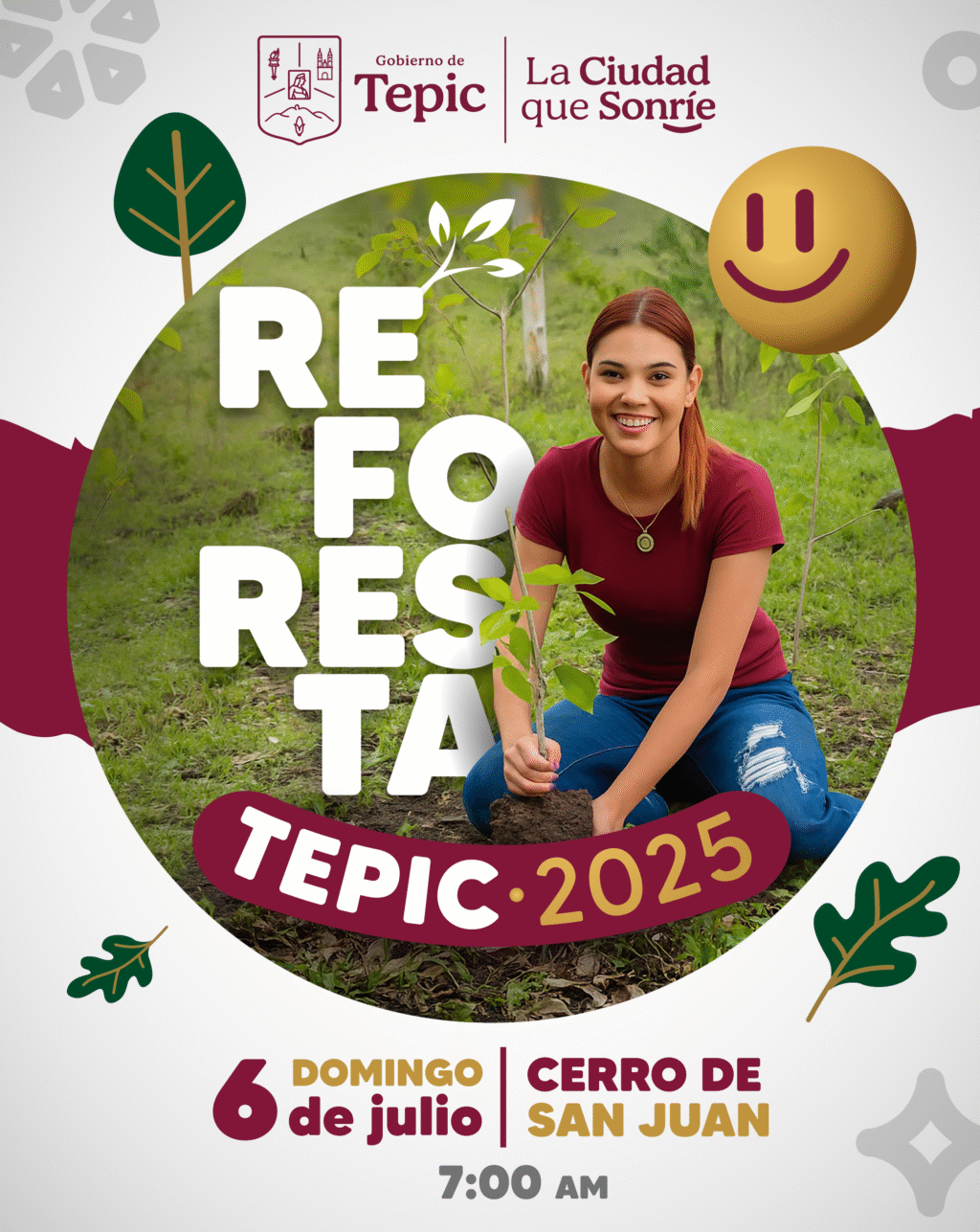 Tepic, Nayarit β El Gobierno de Tepic invita a toda la ciudadanΓa a participar en la gran jornada de ReforestaciΓ³n Tepic 2025, que se llevarΓ‘ a cabo el prΓ³ximo domingo 6 de julio a las 7:00 a.m. en el Cerro de San Juan, uno de los pulmones naturales mΓ‘s importantes de la capital nayarita.