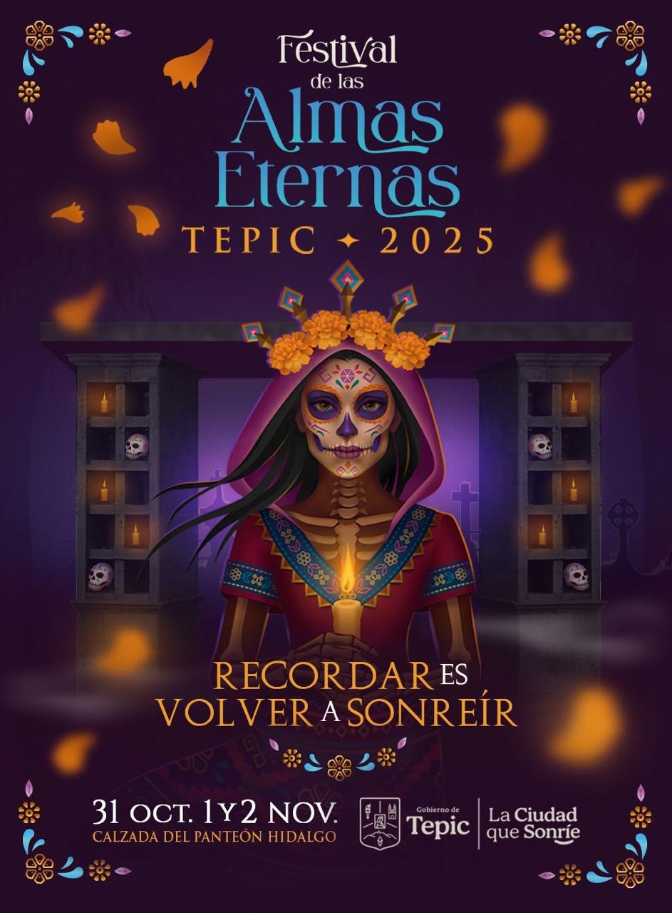 – La capital nayarita se prepara para celebrar una de las festividades más esperadas del año: el Festival de las Almas Eternas Tepic 2025, que se llevará a cabo los días 31 de octubre, 1 y 2 de noviembre en la Calzada del Panteón Hidalgo.