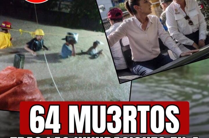 La cifra de fallecidos por las lluvias aumentรณ a 64 personas en Veracruz, Hidalgo, Querรฉtaro y Puebla, informรณ la coordinadora...