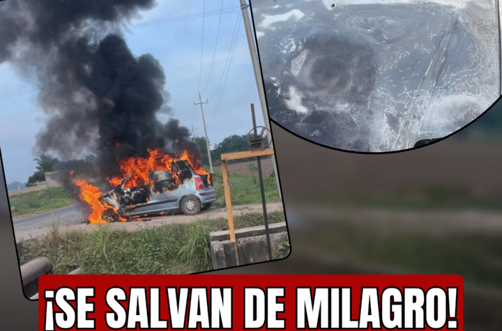 Momentos de terror y desesperaciรณn se vivieron en Santiago Ixcuintla, Nayarit, cuando un vehรญculo comenzรณ a arder en llamas sobre...