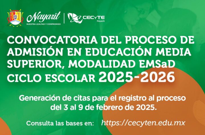 Convocatoria del proceso de admisión de Educación Media Superior modalidad EMSaD ciclo escolar 2025-2026